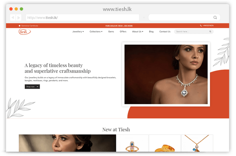 Tiesh is Sri Lankaβs leading contemporary jeweller known for its masterpieces that inspire an ethereal feel of being ensconced in a world of oneβs own where gems and jewellery take precedence. We redesigned the web pages of Tiesh website to be more user-friendly. Revamped the online presence of Tiesh by redesigning a website that is responsive for all the screens. The new design has increased the user experience for users to handle the website easily.